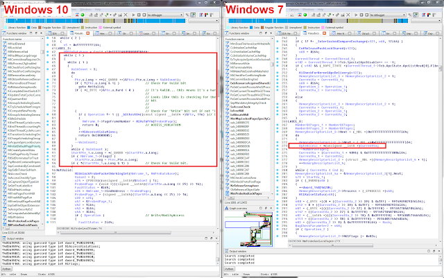 On Windows 10, this process was optimized. Instead of accessing the memory directly, a PTE (Page Table Entry) walk is performed to ensure that the correct permissions exist. This change makes the process more efficient especially since the PTEs are leveraged to lock the memory into physical pages anyway.